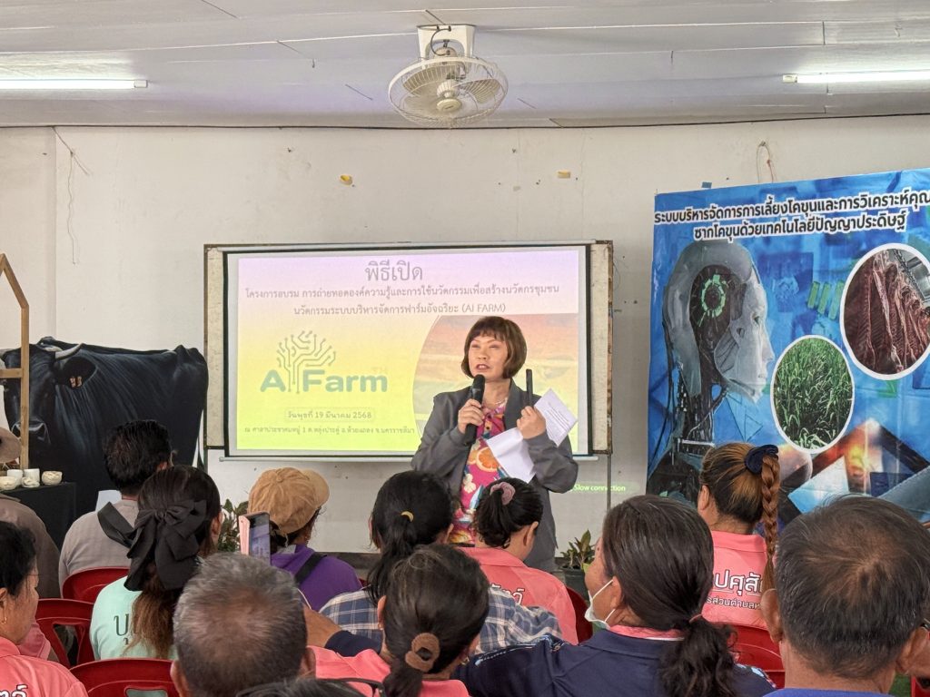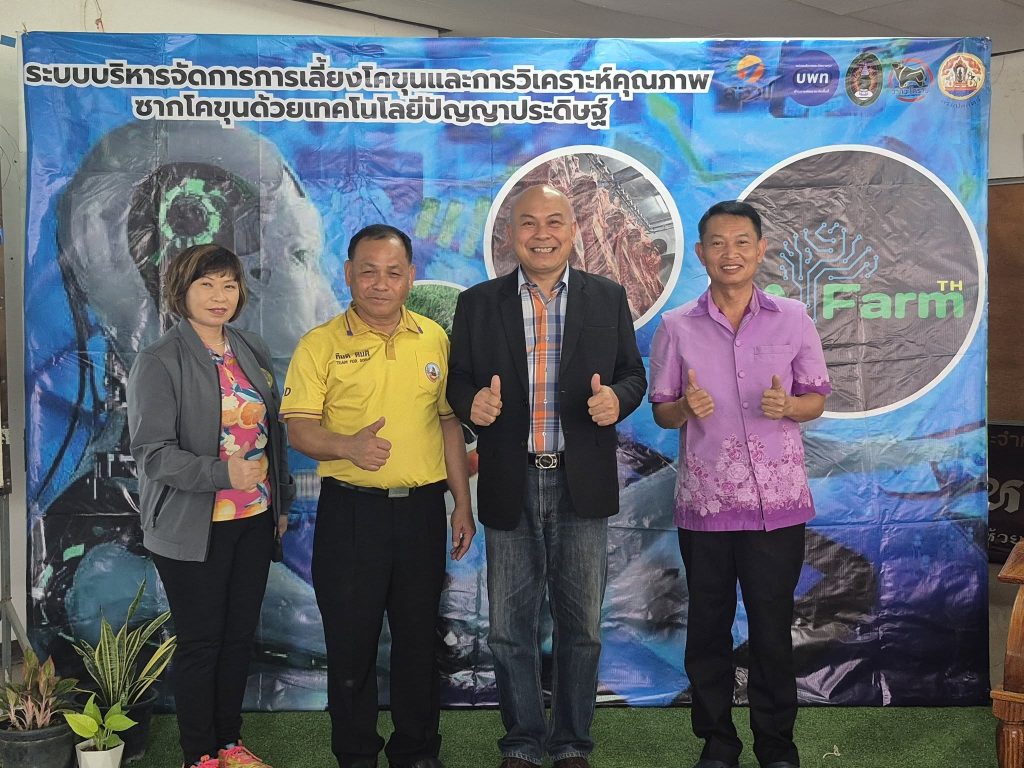 ผู้ช่วยศาสตราจารย์ ดร.สายสุนีย์ จับโจร คณะวิทยาศาสตร์และเทคโนโลยี มหาวิทยาลัยราชภัฏนครราชสีมา ได้พัฒนานวัตกรรมระบบบริหารจัดการฟาร์มอัจฉริยะ (AI Farm) เพื่อจัดเก็บข้อมูลการเลี้ยงโคขุนตลอดห่วงโซ่อุปทาน ตั้งแต่ต้นน้ำ กลางน้ำ และปลายน้ำ เพื่อเป็นต้นแบบในการบริหารจัดการฟาร์มโคขุนโดยใช้เทคโนโลยีดิจิทัลและเทคโนโลยีปัญญาประดิษฐ์