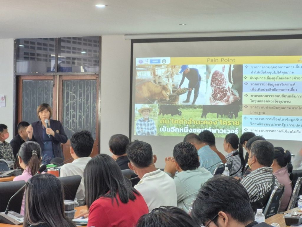 ผู้ช่วยศาสตราจารย์ ดร.สายสุนีย์ จับโจร และคณะ ลงพื้นที่พบโรงเชือดในจังหวัดนครราชสีมา ณ ห้องประชุมสำนักงานปศุสัตว์จังหวัดนครราชสีมา เพื่อนำเสนอและทดลองใช้ระบบการถ่ายทอดองค์ความรู้การใช้เทคโนโลยีดิจิทัลนวัตกรรมระบบบริหารจัดการการเลี้ยงโคขุนและการวิเคราะห์คุณภาพซากโคขุนด้วยเทคโนโลยีปัญญาประดิษฐ์ เพื่อทำความร่วมมือและเชื่อมโยงกกับกลุ่มโรงเชือด พร้อมปรับแต่งระบบให้เหมาะสมกับพื้นที่ ในวันที่ 25 กุมภาพันธ์ พ.ศ. 2568