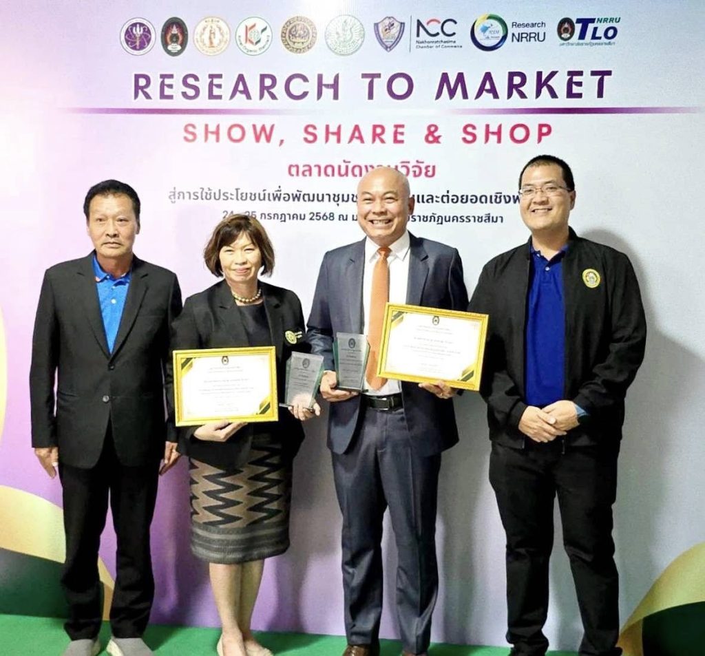 รางวัลนักวิจัยดีเด่น ด้านพัฒนาและสร้างความเข้มแข็งให้แก่ชุมชน ผู้ช่วยศาสตราจารย์ ดร.สายสุนีย์ จับโจร ผู้อำนวยการสำนักคอมพิวเตอร์ มหาวิทยาลัยราชภัฏนครราชสีมา ที่ได้รับรางวัลนักวิจัยดีเด่น ประจำปี 2568 ในงาน Research to market: Show ,share & Shop "ตลาดนัดงานวิจัยสู่การใช้ประโยชน์" เพื่อพัฒนาชุมชนท้องถิ่นและต่อยอดเชิงพาณิชย์ จัดโดยสถาบันวิจัยและพัฒนามหาวิทยาลัยราชภัฏนครราชสีมา ณ อาคารยุพราชเบญจมงคล(อาคาร 31) มอบรางวัลโดย รองศาสตราจารย์ ดร.อดิศร เนาวนนท์ อธิการบดีมหาวิทยาลัยราชภัฏนครราชสีมา เมื่อวันที่ 25 กรกฎาคม 2568 ที่ผ่านมา ภายในงานมีการกล่าวต้อนรับโดย ผู้ช่วยศาสตราจารย์ ดร.วาสนา ภานุรักษ์ ผู้อำนวยการสถาบันวิจัยและพัฒนา มหาวิทยาลัยราชภัฏนครราชสีมา ซึ่งสถาบันวิจัยและพัฒนา ได้ตระหนักถึงความสำคัญในการผลิตผลงานวิจัย ที่ดี มีประโยชน์ต่อการพัฒนาชุมชน ท้องถิ่น รวมถึงการเผยแพร่ผลงานวิจัยและนวัตกรรม เป็นการเพิ่มช่องทาง ในการจับธุรกิจและเพิ่มขีดความสามารถในการแข่งขัน ของคนในท้องถิ่น เป็นการบูรณาการความร่วมมือกับภาคีเครือข่ายทุกภาคส่วน ระหว่างหน่วยงานภายในและเครือข่ายภายนอกมหาวิทยาลัยฯได้เป็นอย่างดี การจัดกิจกรรมในครั้งนี้ มีการแสดงผลงานวิจัยและนวัตกรรมที่เป็นผลงานโดดเด่นของนักวิจัยทุกคณะวิชา มีการประกวดผลงานวิจัยดีเด่น นักวิจัยดีเด่น ครอบคลุมทุกสาขาวิชาการวิจัย ของมหาวิทยาลัยราชภัฏนครราชสีมาอีกด้วย ประจำปี 2568 ในงาน การ Research to market: Show, share & Shop "ตลาดนัดงานวิจัยสู่การใช้ประโยชน์" เพื่อพัฒนาชุมชนท้องถิ่นและต่อยอดเชิงพาณิชย์ 🏅 Outstanding Researcher Award in Community Development and Empowerment for the year 2025, presented at the event “Research to Market: Show, Share & Shop — A Research Fair for Community Development and Commercialization.